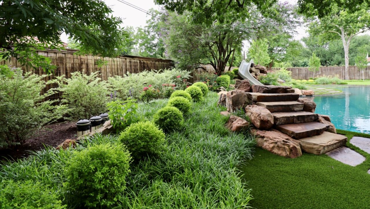 Dallas, TexasRusswood Acres LandscapeWhat began as a request to enhance a small front bed quickly evolved into a full-property transformation. This Design-Build project brought new life to a previously neglected landscape, uniting curb appeal with functional beauty. From reshaping mature boxwoods to installing new turf and resolving drainage issues, every detail was carefully considered to reflect the elegance of the home. In the backyard, the focus shifted to family. A raised trampoline was safely integrated into the lawn with a custom masonry wall and precise grading, while synthetic turf inlays revitalized the existing pool deck without disruptive demolition. Strategic irrigation upgrades and privacy plantings completed the transformation, creating a safe, seamless, and stylish outdoor space the entire family can enjoy. CategoryResidentialServicesInstallation, Landscaping, Maintenance, Remodel Explore More Projects Previous Project All Projects Next Project